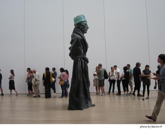 This photo was taken this month in Griffin Court in the Modern Wing of the Chicago Art Institute on the final day of the Roy Lichtenstein retrospective. In the foreground is Thomas Schütte’s Vater Staate. These people you see standing along the wall were in line to see the Lichtenstein show.