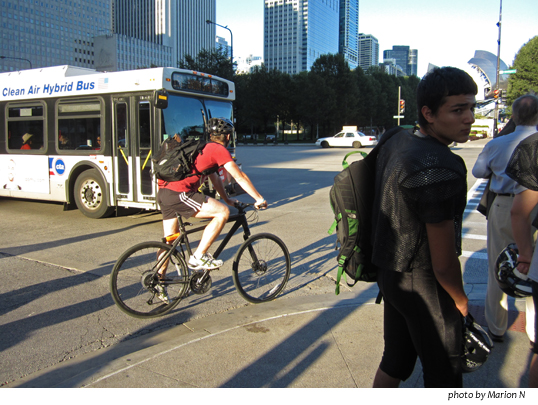 I just love living here. This is downtown Chicago, at the corner of Michigan and Washington, across from wonderful Millennium Park. We were on our way to a night-time performance in the park – possibly opera related? Walking here through the Loop reminded me why I love to live in the city: people from everywhere in the world have chosen to come here, with their ideas and their cooking and their ways of living; everybody has some place to be; and here we all are, all in this together.